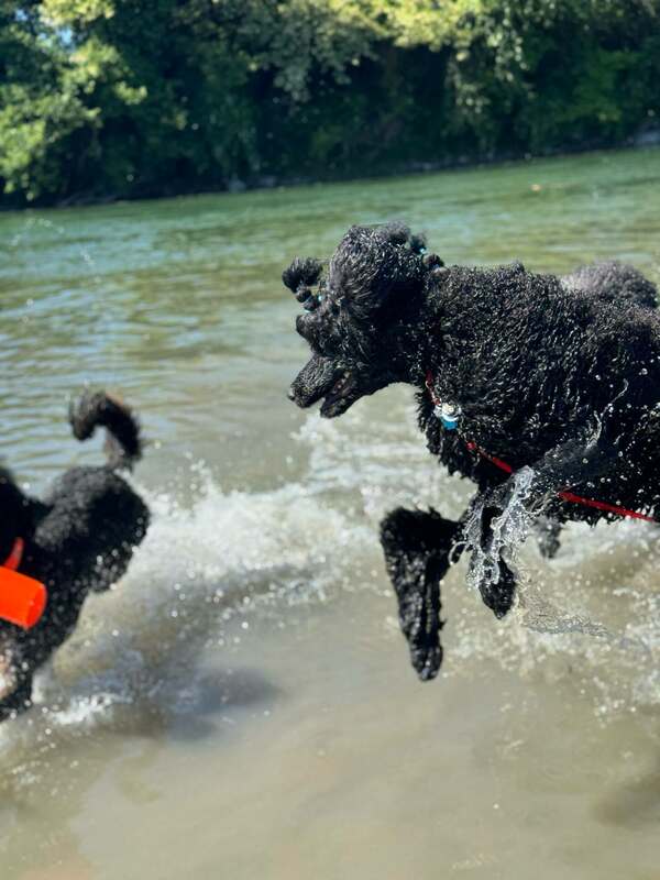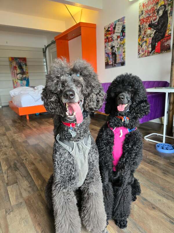 Finan is a social boy and loves his poodle housemate, Salem.